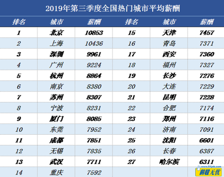 綜合來看,本季度大部分城市薪酬相對(duì)平穩(wěn),變化不大,分析認(rèn)為:下半年調(diào)薪企業(yè)占比較低,企業(yè)受經(jīng)濟(jì)環(huán)境影響調(diào)薪乏力;此外,第三季度企業(yè)招聘需求趨緩,跟二季度相比,企業(yè)金九銀十招聘旺季不旺,對(duì)各城市薪酬上漲沒有明顯拉動(dòng)。